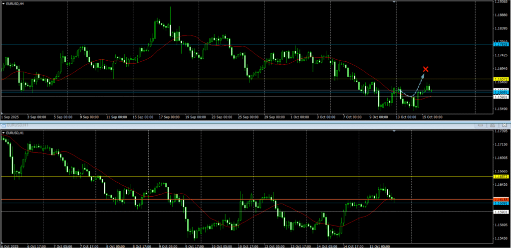 今から4hの下降の波を狙って1h全戻しからの売りはしない。