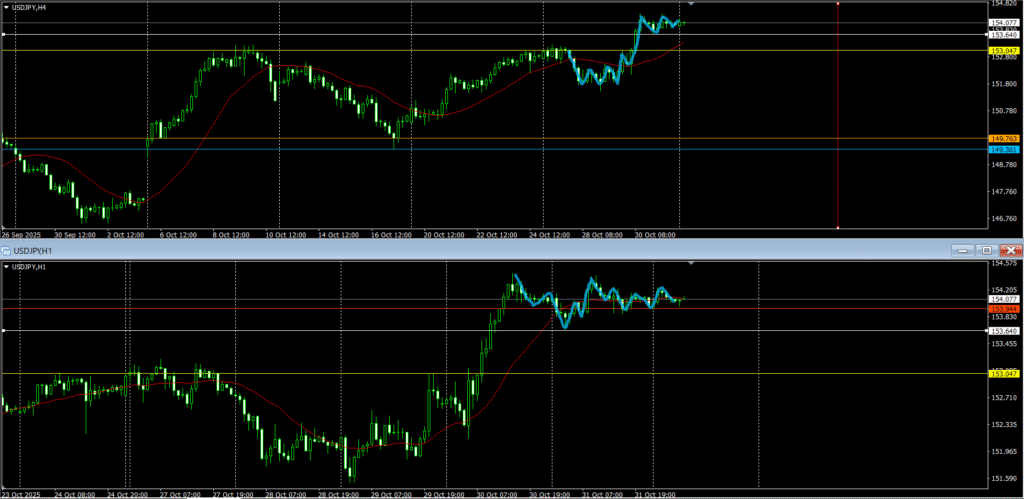上位足(週・日)が上昇の波の途中なので4hで買っていいきたいが、今は4hトレンドフォローができる形ではないので静観する。