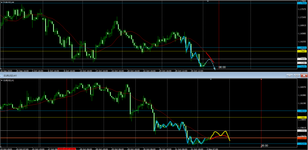 ここから一旦上目線になり、そこから下降転換するところを狙っていきたい。(狙いは4h下降の波)