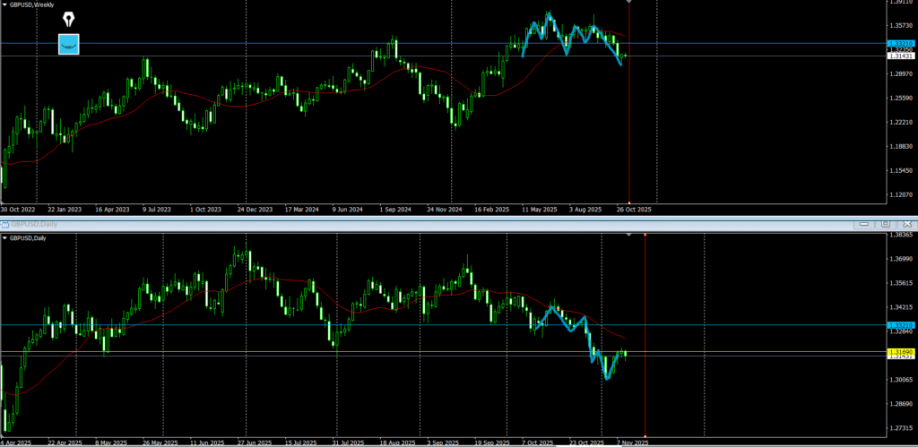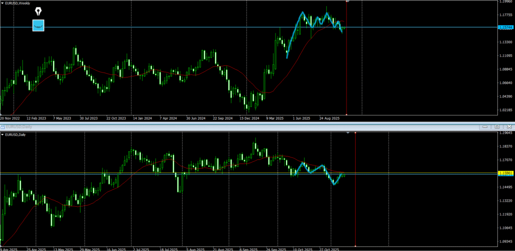 青水平線はレジスタンス(上に週足戻り売り勢力)
