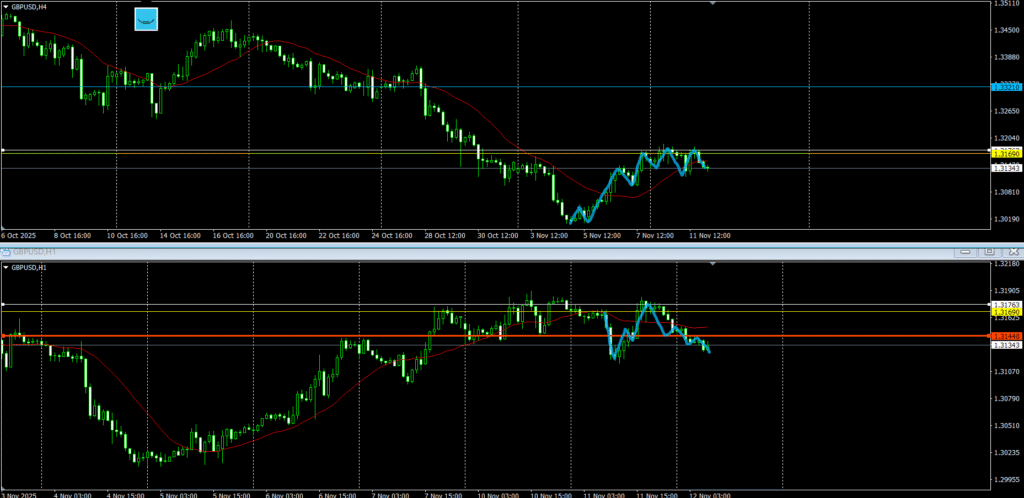 赤の水平線はレジスタンス(上に1h売り抑え勢力)