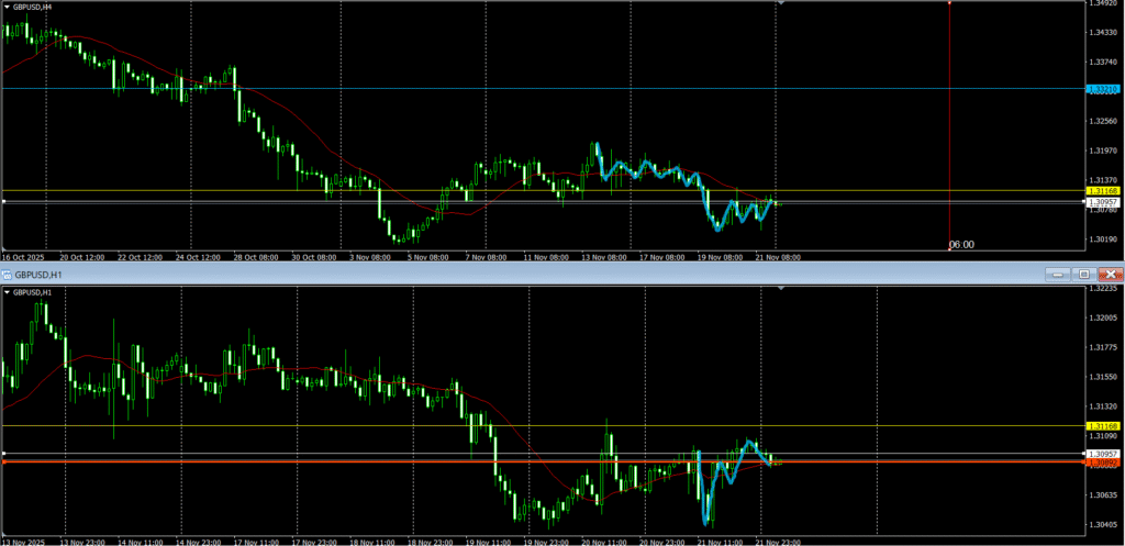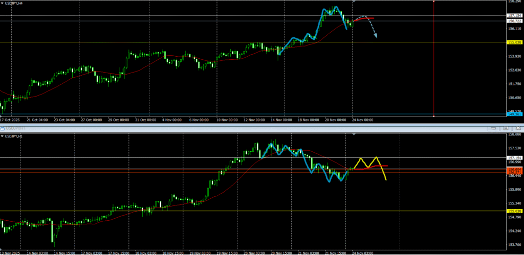 4h下降の波を狙っていく、1h攻防ラインができたらそのブレイクから売っていきたい。