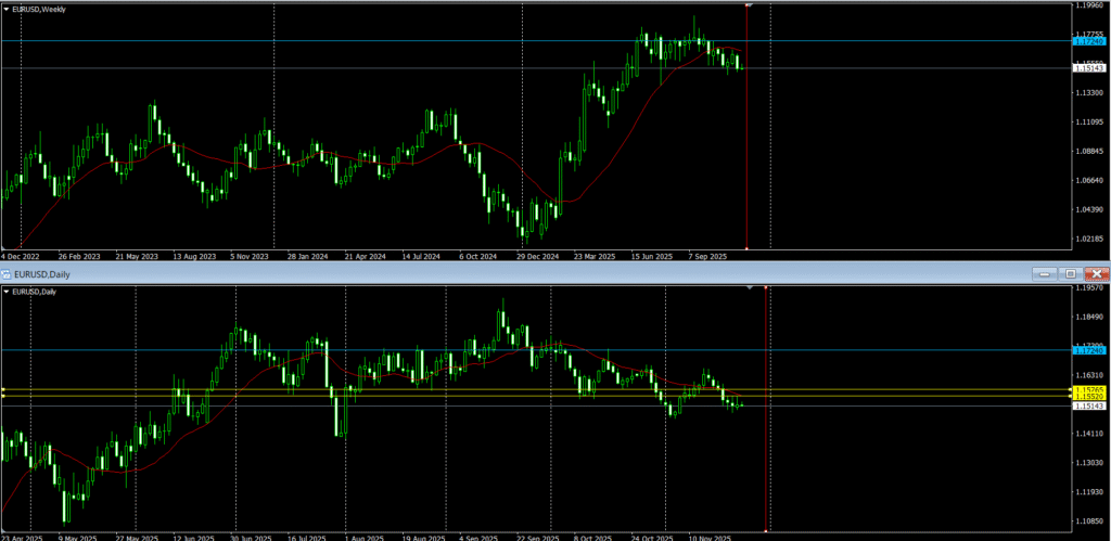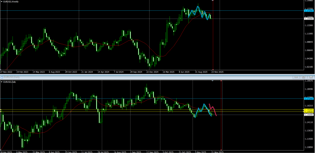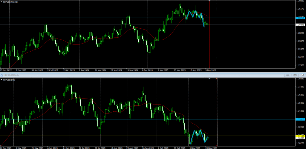 青水平線はレジスタンス(上に週足戻り売り勢力)