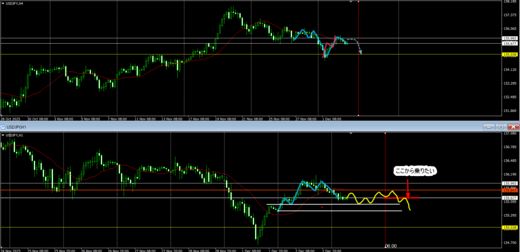 既に4hの波が始まってしまったので、様子見ながら時間経過を待っていく。