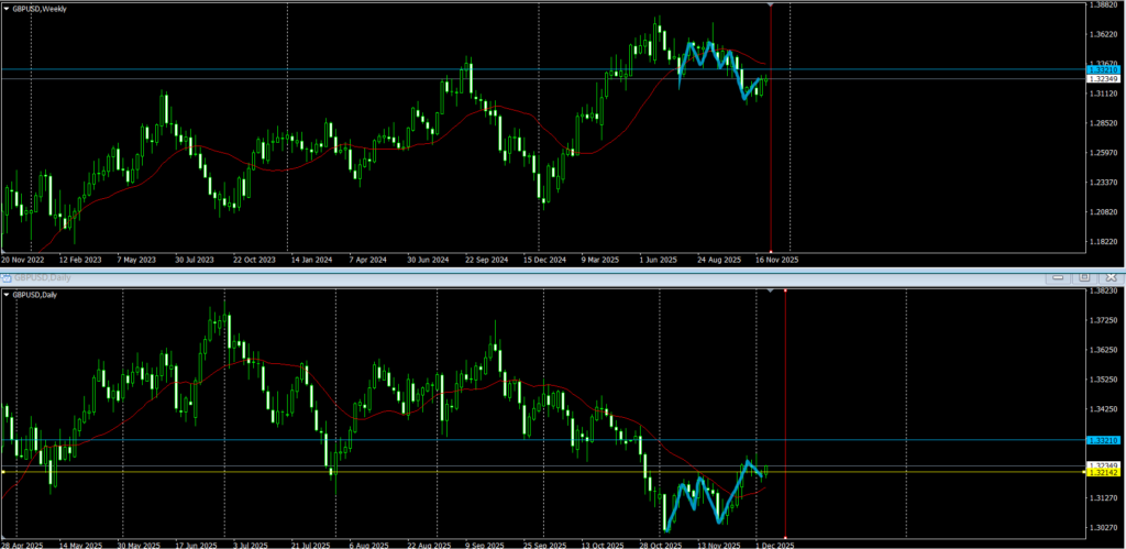青水平線はレジスタンス(上に週足戻り売り勢力)