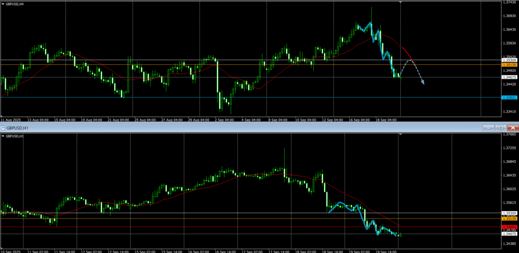 ・4時間足 方向:下