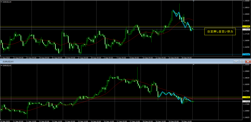 4hは方向下だが、今は日足の押し目買い勢力の中にいる。