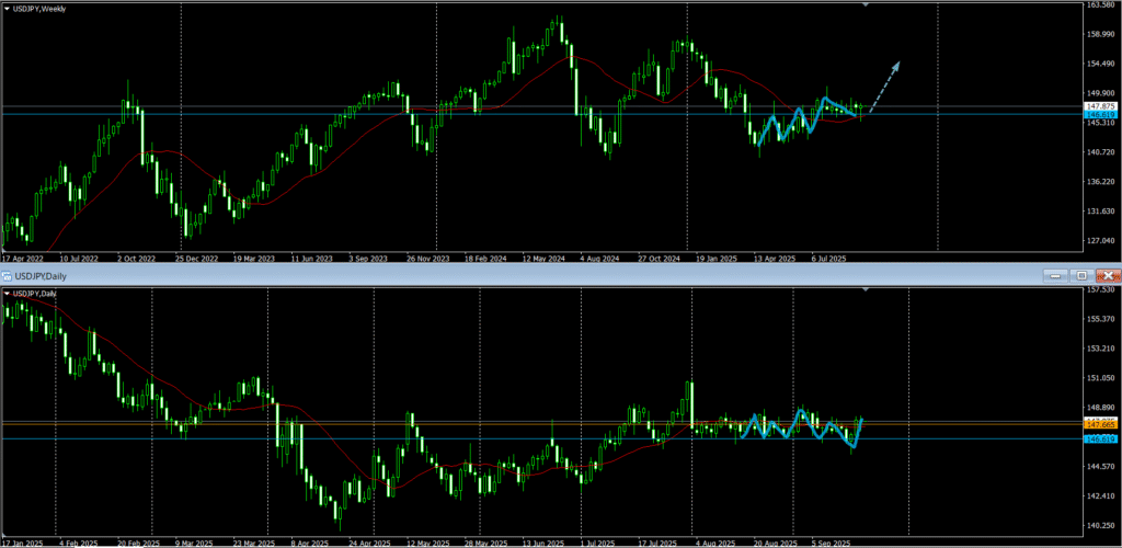 週足の方向が少しわかりにくいが、基本的には売りを狙っていきたい。
