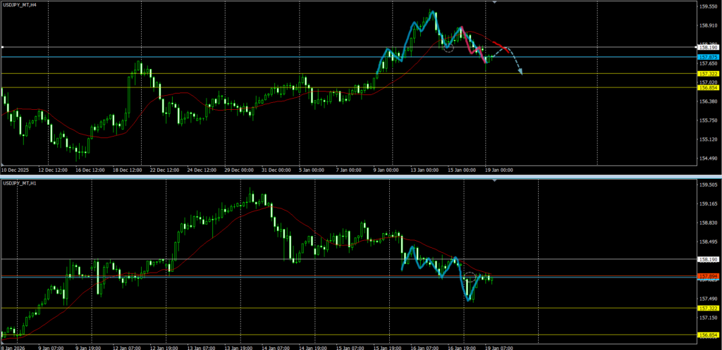 ・4時間足 方向:下