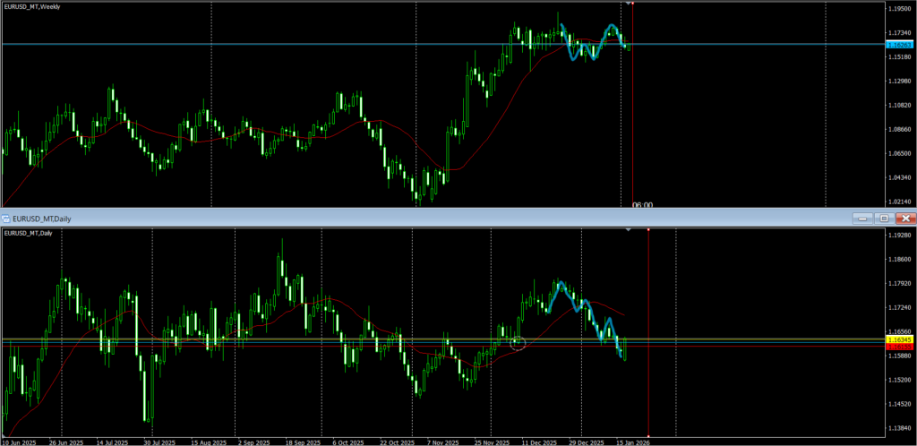青水平線はサポート(下に週足買い支え勢力)