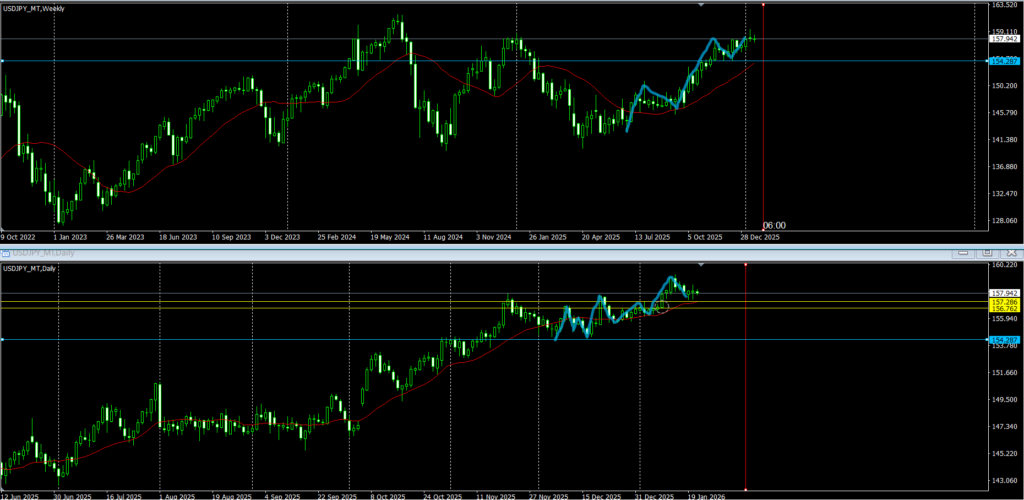 黄色の水平線はレジスタンス(上に日足売り抑え勢力)