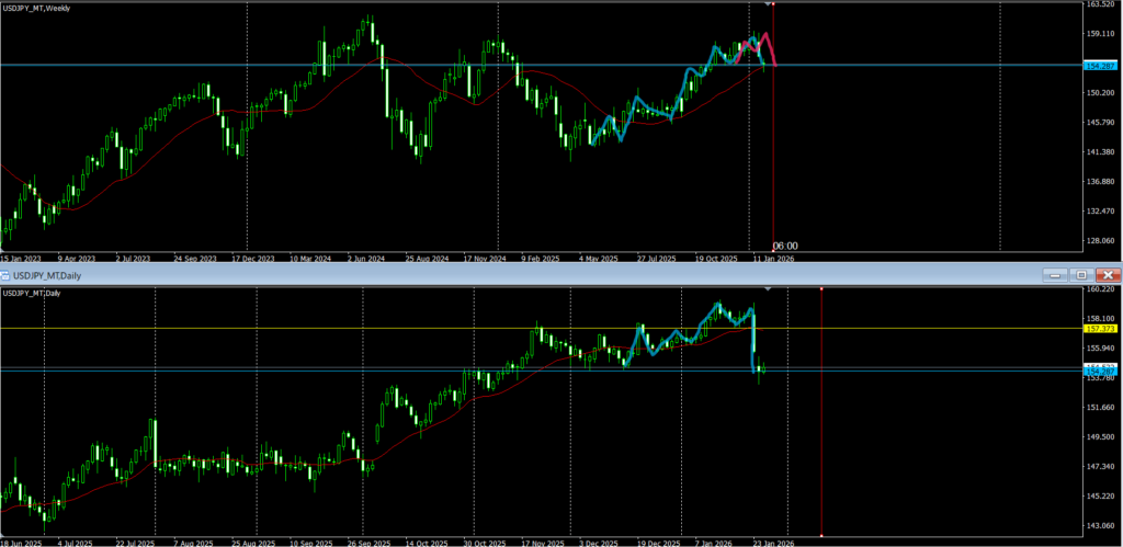為替介入による下降が強く、今は日足も4hもトレンドフォローできる状態ではない。なのでしばらく時間経過を待っていきたい。